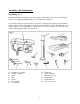 Assembly and adjustments (continued) Feed handles (Fig. 9) 1. Thread the three feed handle rods (1) into the holes on the feed hub (2). 2. Hand tighten. Note: One or two of the feed handles may be removed if an unusually-shaped workpiece interferes with handle rotation. Laser batteries (Fig. 10) 1. Turn off the laser. 2. Press the tab (1) located below the laser switch (2) and lift up the laser switch cover (3). 3. Insert 2 "AA" batteries in the laser battery compartment (4). 4.