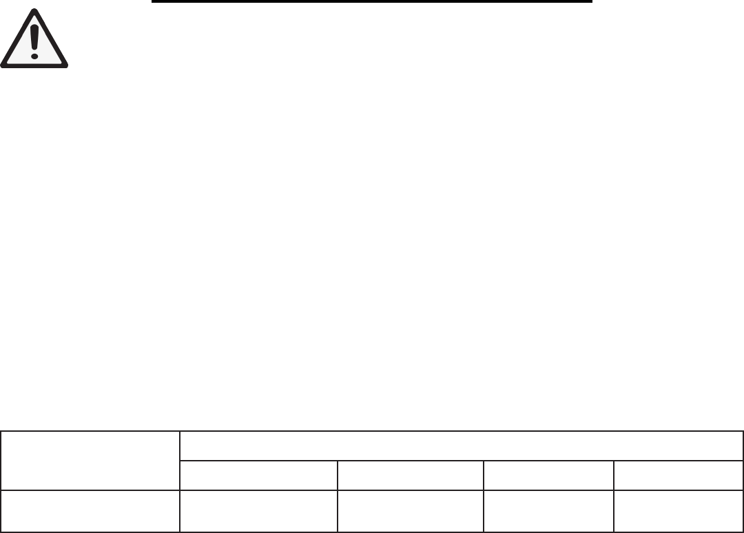 in loss of power and overheating. The table below shows the correct size to be used according to cord length and