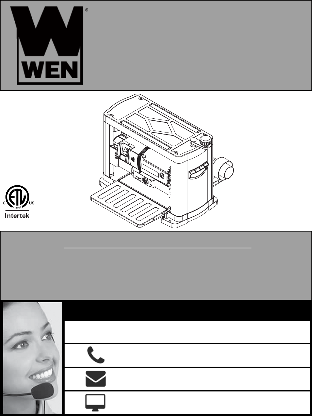 3 IN. THICKNESS PLANER Model # 6552 bit.ly/wenvideo 4005911 IMPORTANT: Your new tool has been engineered and manufactured to WEN’s highest standards for dependability, ease of operation, and operator safety. When properly cared for, this product will supply you years of rugged, trouble-free performance. Pay close attention to the rules for safe operation, warnings, and cautions. If you use your tool properly and for intended purpose, you will enjoy years of safe, reliable service.