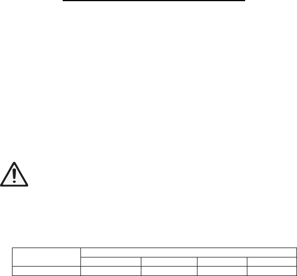 in loss of power and overheating. The table below shows the correct size to be used according to cord length and