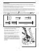 2. Insert a Handrail (67) into the Upper Handrail (68) as shown. The lower end of the Handrail should sit on the Base Hood (105) as shown. (Note: It may be necessary to twist the Handrail as you insert it. It may also be necessary to loosen the two Screws [3] several turns.) Next, tighten two 3/4” Screws (66) into the Handrail. If you loosened the Screws, retighten them. 2 68 3 66 67 Attach the other Handrail (not shown) to the left side of the Incline Trainer in the same way. 105 3.