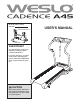 BEFORE YOU BEGIN using the treadmill. If you have questions after reading this manual, please see the front cover of this manual. To help us assist you, note the product model number and serial number before calling. The model number of the treadmill is WETL17105.0. The serial number can be found on a decal attached to the treadmill (see the front cover of this manual for the location). Thank you for selecting the WESLO® CADENCE A45 treadmill.