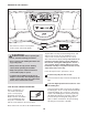 DIAGRAM OF THE CONSOLE Note: If there is a sheet of clear plastic on the console, remove the plastic. Clip Key CAUTION: Before operating the console, read the following precautions. • Do not stand on the walking belt when turning on the power. • Always wear the clip (see the drawing above) while operating the treadmill. • Adjust the speed in small increments to avoid sudden jumps in speed. clip attached to the key (see the drawing above), and slide the clip securely onto the waistband of your clothes.