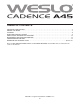 ORDERING REPLACEMENT PARTS To order replacement parts, please contact the establishment where you purchased this product. To help us assist you, be prepared to provide the following information: • the MODEL NUMBER of the product (WETL17105.0) • the NAME of the product (WESLO CADENCE A45 treadmill) • the SERIAL NUMBER of the product (see the front cover of this manual) • the KEY NUMBER and DESCRIPTION of the part(s) (see the PART LIST and EXPLODED DRAWING in the center of this manual) Part No.