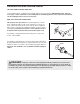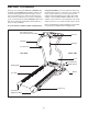 3. With the help of a second person, raise the Handrails (6, 7) so the Base (71) is flat on the floor. 3 7 6 Attach the Wheels (15) to the inner sides of the Base (71) with two Wheel Bolts (14) and two Nuts (17). Do not overtighten the Nuts; the Wheels should turn freely. 14 15 55 Position the treadmill Frame (55) between the Handrails (6, 7) as shown. See the inset drawing. Locate the wire tie in the lower end of the Right Handrail (6).