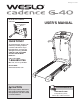 Meijer.com BEFORE YOU BEGIN Thank you for selecting the new WESLO® CADENCE G-40 treadmill. The CADENCE G-40 treadmill combines advanced technology with innovative design to help you get the most from your exercise in the convenience of your home. And when you’re not exercising, the CADENCE G-40 treadmill can be folded up, requiring less than half the floor space of other treadmills. number and serial number before contacting us. The model number of the treadmill is WLTL29606.0.
