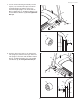Meijer.com 12. See the lower drawing. Position the Uprights (53, 54) so that the treadmill Frame (51) is centered between the Uprights. 12 1 2 Firmly tighten the two M10 x 110mm Bolts (1) and the four M10 x 58mm Bolts (2). Be careful not to overtighten the M10 x 110mm Bolts. 51 Top View 54 13. Attach the Latch Assembly (48) to the Left Upright (53) with two 18mm Screws (58); start both Screws before tightening either of them. 53 51 13 53 48 58 14.