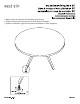 4. Lay top onto a clean smooth surface such as carpet or cardboard. Align assembled legs. Insert bolt (E), lock washer (C) and flat washer (B). Tighten with supplied hex key (D). 4. Lay haut sur une surface lisse et propre comme une moquette ou du carton. Aligner les jambes assemblés. Insérez le boulon (E), rondelle (C) et la rondelle plate (B). Serrer avec la clé hexagonale fournie (D). 4. Sentar arriba sobre una superficie lisa y limpia, como alfombras o los cartones. Alinear las patas ensam bladas.