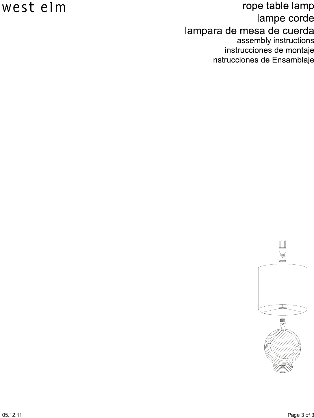 . Esta unidad ha sido aprobada para hasta (1) Esta unidad West Elm debe utilizar un bombillo 60-vatios no de
