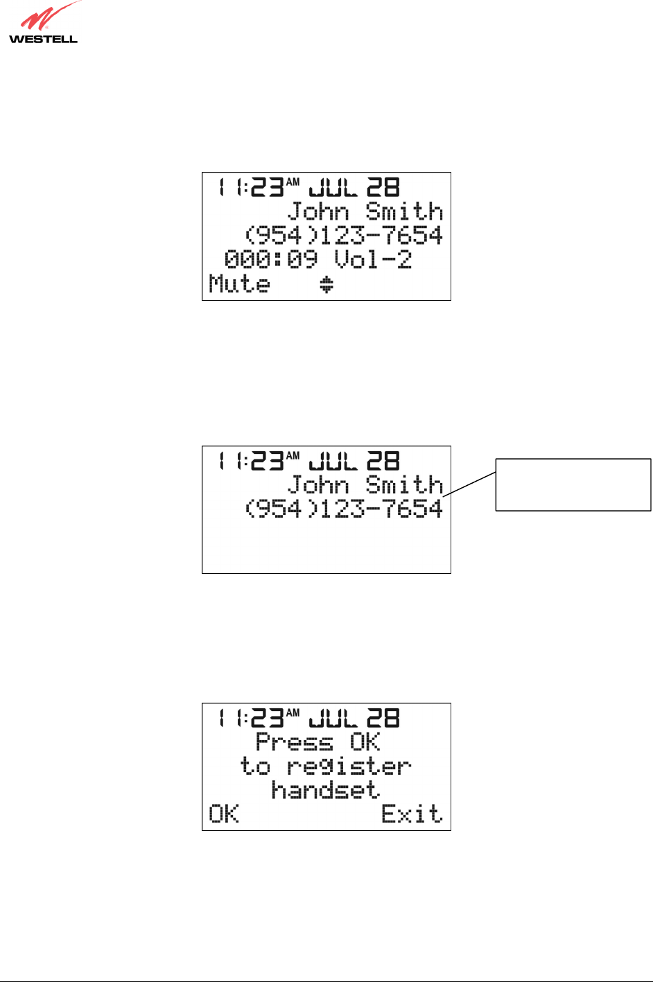 When in Talk mode the screen will display the caller’s name, the phone number, and the volume level.