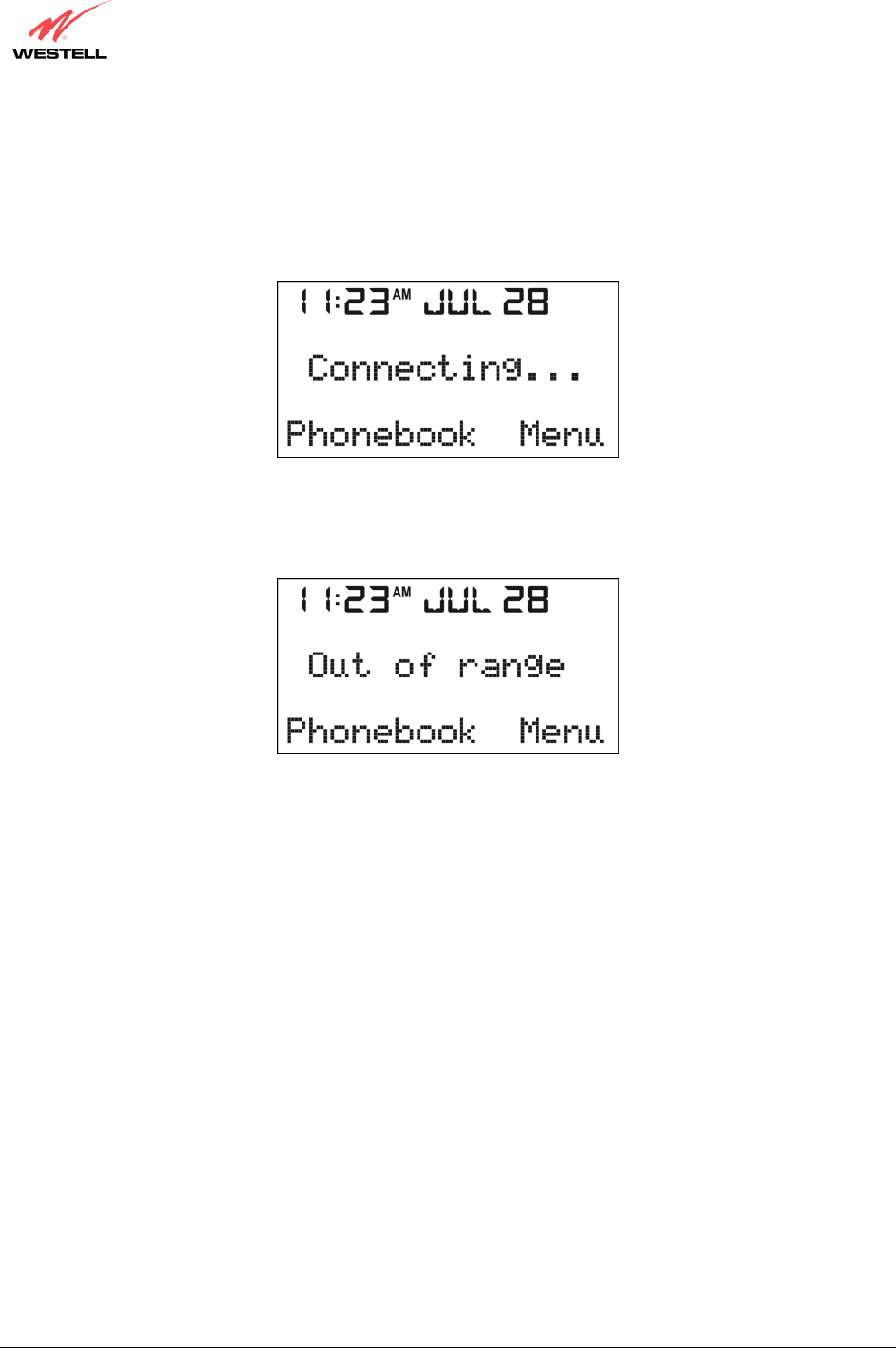 If the Handset detects an out of range condition, it will start searching for Base and display the following screen.