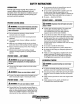 SAFETY INSTRUCTIONS BATTERY EXPLOSION A WARNING: Carbon monoxide (CO) Is an Invisible A WARNING: Battery explosion can cause injury odorless gas. Inhalation produces f1u~lIke symptoms, nausea 01 death! 01 death! • Do not smoke or allow an open flame near the battery being serviced. Lead acid batteries emit hydrogen, a highly explosive gas, which can be ignited by electrical arcing or by lit tobacco products.