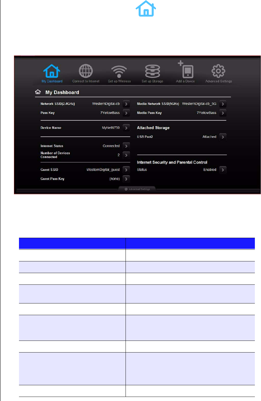 The My Dashboard’s home screen is a simple snapshot of the router’s configuration with the