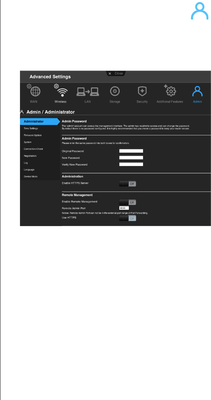 2. Enter the new administrator’s password in the Password and Verify Password fields