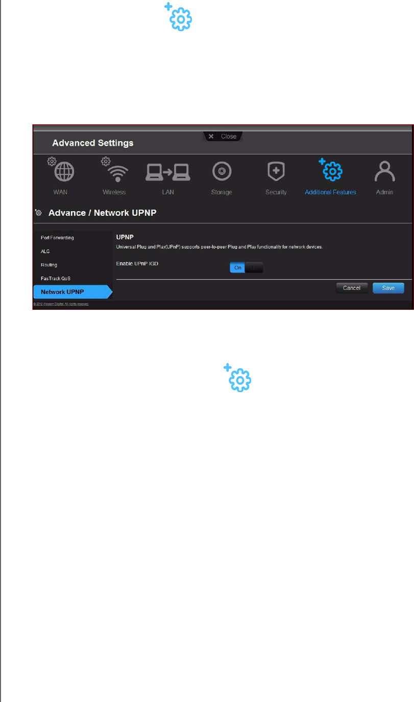 3. To enable UPnP, toggle the UPnP IGD button to On. (UPnP is enabled by default.)