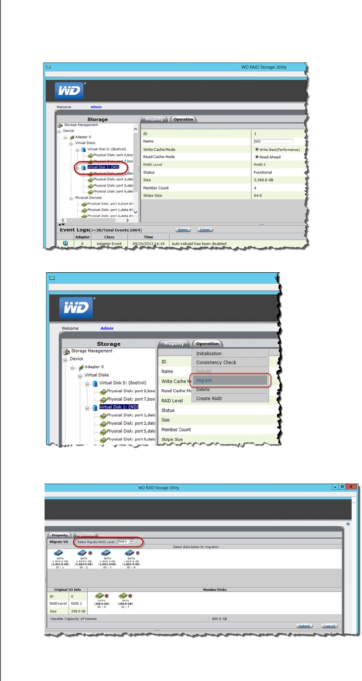 Use the following steps to migrate a virtual drive into a RAID configuration.