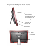Diagram of the Digital Photo Frame USB Port for USB Flash Drives Mini USB Port for File Transfer xD-Picture CardTM Slot Memory StickTM, Memory Stick PROTM, Memory Stick DuoTM, and Memory Stick PRO DuoTM Slot Secure DigitalTM and Multi Media CardTM Slot Compact FlashTM and Micro DriveTM Slot AC Power Input Keypad Power Button Adjustable Stand 3