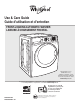 Use & Care Guide Guide d’utilisation et d’entretien FRONT-LOADING AUTOMATIC WASHER LAVEUSE À CHARGEMENT FRONTAL Para obtener acceso al Manual de uso y cuidado en español, o para obtener información adicional acerca de su producto, visite: www.whirlpool.com. If you have any problems or questions, visit us at www.whirlpool.com Pour tout problème ou question, consulter www.whirlpool.ca Designed to use only HE High Efficiency detergents. Conçue pour l’utilisation d’un détergent haute efficacité seulement.