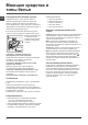 Миючі засоби і білизна UA Касета з миючим засобом Добрий результат прання залежить також вiд правильного дозування миючого засобу: надлишок миючого засобу приведе до неефективного прання та сприятиме утворенню накипу всереденi пральної машини, а також забрудненню довкiлля. ! Не використовуйте миючі засоби для ручного прання, тому що вони утворюють надто багато піни. Виймiть касету для миючих засобiв та 4 додайте миючi засоби або присадки, як вказано нижче.