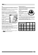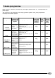 Tabela programów Myj¹c naczynia w zmywarce gwarantuje siê pe³n¹ higienê pomieszczenia i to, ¿e naczynia bêd¹ na pewno czyste. Jeli naczynia s¹ ma³o zabrudzone lub zosta³y uprzednio sp³ukane wod¹, nale¿y odpowiednio zmniejszyæ iloæ rodka myj¹cego. Program 1) Szybki Codzienny 2) Eko 3) Szybki & Suszenie 4) Moczenie 5) Energiczny Iloæ rodka myj Czas trwania ¹cego do zmyw rodek programu ania wstêpnego nab³yszcz (tolerancja + Zmywania aj¹cy ±10%) w³aciwego Hrs. Min.