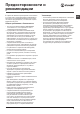 Предосторожности и рекомендации ! Стиральная машина спроектирована и изготовлена в соответствии с международными нормативами по безопасности. Необходимо внимательно прочитать настоящие предупреждения, составленные в целях вашей безопасности. Общие требования к безопасности • После использования машины обязательно отключайте ее от сети переменного тока и закрывайте водопроводный кран.