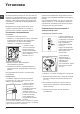 Встановлення UA ! Необхідно зберігати дану брошуру, щоб мати мати нагоду звернутися до неї у будь-який момент. У раз продажу, передачі іншій особі або переїзду переконайтеся, що інструкція перебуває разом із пральною машиною й новий власник може ознайомитися з її принципами роботи й відповідними запобіжний заходами. ! Уважно вивчіть інструкцію: в ній міститься важлива інформація про встановлення, використання та безпеку.