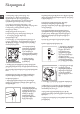 Кир жуу циклын аткаруу тартиби KGZ 1. МАШИНАНЫ КҮЙГҮЗҮҮ ТАРТИБИ , баскычын басыңыз; ИШТЕТҮҮ/ТЫНЫГУУ индикатору сейрек жашыл түс менен бүлбүлдөйт. 2. КИРДИ ЖҮКТӨӨ. Машинанын люгун ачыңыз. Кийинки беттеги программалардын таблицасында көрсөтүлгөн, максималдуу уруксат берилген салмактан ашырбай, барабанга кир кийимди жүктөңүз. 3. ЖУУГУЧ ЗАТТАРДЫ ДОЗАЛОО. Дозаторду чыгарыңыз жана “Жуугуч заттар жана кирдин түрлөрү” бөлүмүндө сүрөттөлгөндөй, ж уугуч к аражатты атайын чөнөкчөлөргө салыңыз. 4. ЛЮКТУ ЖАБЫҢЫЗ. 5.
