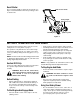 Recoil Starter Blade Control Handle The recoil starter handle is attached to the handle. See Figure 7. Stand behind the unit in the operating position to start the unit. Cutting Height Adjustment Lever Recoil Starter Handle Mulching Plug Spark Plug Wire Figure 7 SECTION 6: OPERATING YOUR LAWN MOWER Keep hands and feet away from the chute area on the cutting deck. See safety labels on page 5.