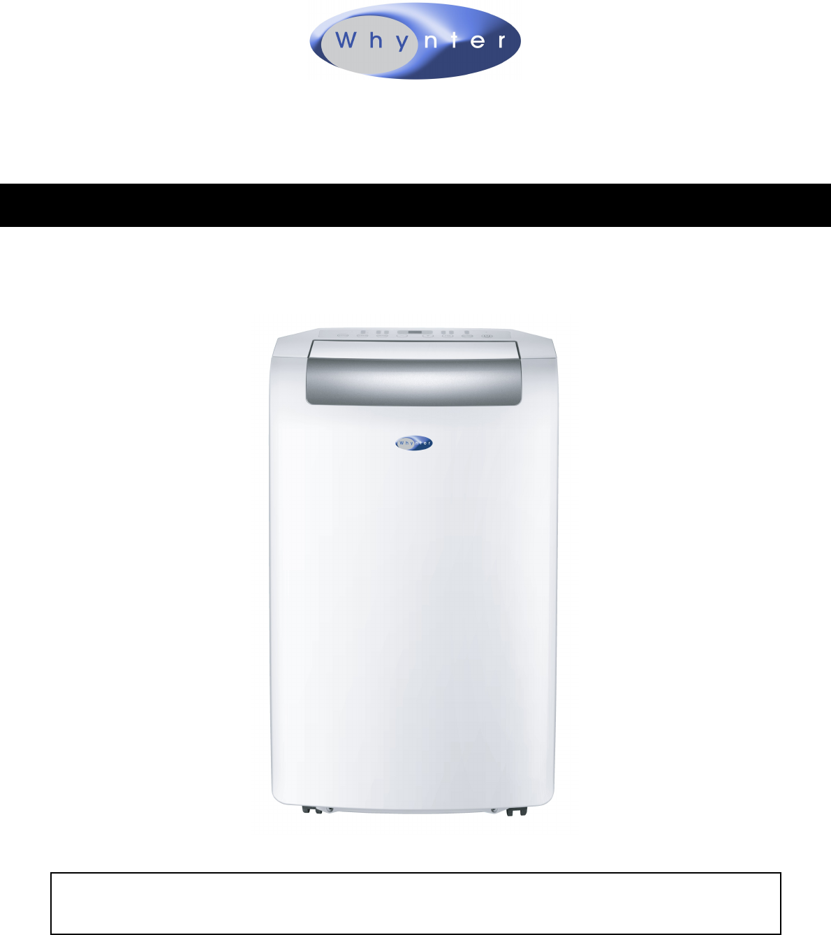 WHYNTER 14,000 BTU PORTABLE AIR CONDITIONER WITH 3M SILVERSHIELD FILTER Model # : ARC-148MS INSTRUCTION MANUAL Congratulations on your new Whynter product. To ensure proper operation, please read this Instruction Manual carefully before using this product. Keep this manual in a safe place for future reference.