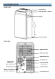 PARTS IDENTIFICATION FRONT VIEW Control Panel Front Air Vent / Louvers Handle Casters (four) BACK VIEW Upper Air Filter Upper Air Intake Upper Drain Port Power Plug Socket (use when storing unit) Power Cord Power Cord Buckle (use when storing unit) Air Outlet Vent Lower Air Intake (Compressor) Lower Air Filter Lower Drain Port 6