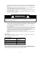TABLE OF CONTENTS PARTS AND FEATURES 3 SAFETY PRECAUTIONS 4 INSTALLATION INSTRUCTIONS 5-6 ELECTRICAL REQUIREMENTS AND INSTALLATION 7-9 OPERATION INSTRUCTIONS 10 - 11 CARE AND MAINTENANCE 12 - 13 SETTINGS 14 - 15 TROUBLESHOOTING 16 WARRANTY INFORMATION 17 2