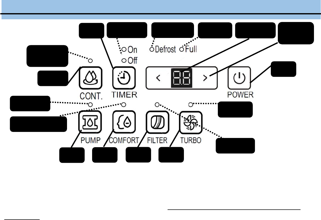 Press to activate the Continuous dehumidifying operation. The Continuous indicator light will come on when this