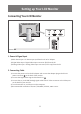 Setting up Your LCD Monitor Connecting Your LCD Monitor 1. Power & Signal Input 1) Main Power Input : DC Power Input Jack from the AC to DC Adapter. 2) Digital Video Input : Digital Video Input connector (DVI) from the PC. 3) Analog Video Input : Analog Video Input connector (D-sub 15p) from the PC. 2. Connecting Cable 1) Connect the power cord to the DC adaptor and connect the adaptor plug to the DC12V power connector 1 on the back of the monitor. 2) Connect the Digital video signal cable from PC to 2 .