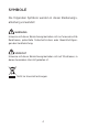 SYMBOLE Die folgenden Symbole werden in dieser Bedienungsanleitung verwendet: WARNUNG Hinweise mit dieser Bezeichnung beziehen sich auf unerwünschte Reaktionen, potentielle Sicherheitsrisiken oder Beeinträchtigungen der Geräteleistung. VORSICHT Hinweise mit dieser Bezeichnung beziehen sich auf Situationen, in denen besondere Vorsicht geboten ist. Nicht im Hausmüll entsorgen.