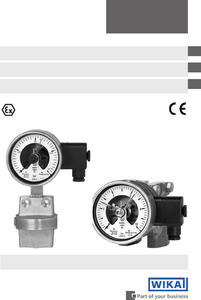 Operating Instructions Betriebsanleitung Mode d'emploi Pressure gauges Model 7 per directive 94/9/EC (ATEX) with inductive contacts Model 831 GB Druckmessgeräte Typ 7 nach Richtlinie 94/9/EG (ATEX) mit Induktivkontakten Typ 831 D Manomètres Type 7 selon directive 94/9/EG (ATEX) avec contacts inductifs Type 831 F II 2 GD c TÜV 03 ATEX 2304 X Model 732.51.100 per ATEX with inductive contact Model 831.1 Model 732.14.100 per ATEX with inductive contact Model 831.
