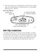 4. Turn the receiver on, and adjust the volume (top control) and tone (inside battery compartment) to a comfortable listening level. (FIG. B). FIG. B: Top of Receiver ON/OFF, VOLUME CONTROL SWITCH HEADPHONE JACK OFF "ON"/ LOW BATTERY/ FLASH CODE INDICATOR A299 Belt Clip Installation To install the belt clip on the rear of the PLR BP1, position the belt clip on the back. Turn the belt clip 180˚ left or right to secure the clip. The BP1 can now be clipped onto a belt.