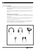 HEADPHONES AND EARPHONES The HED 021 Lightweight Headphone is the standard headset for the Tour Guide System. It offers excellent sound quality and wearing comfort. The foam earpads may be removed and washed in a mild detergent, rinsed thoroughly, and air dried. Replacement pads are part number HED 013. The headphone plugs into the “EAR” jack on top of the Receiver. The headphones are wired with a mono plug. If a stereo headphone is substituted, it will only work on one side of the headphone.