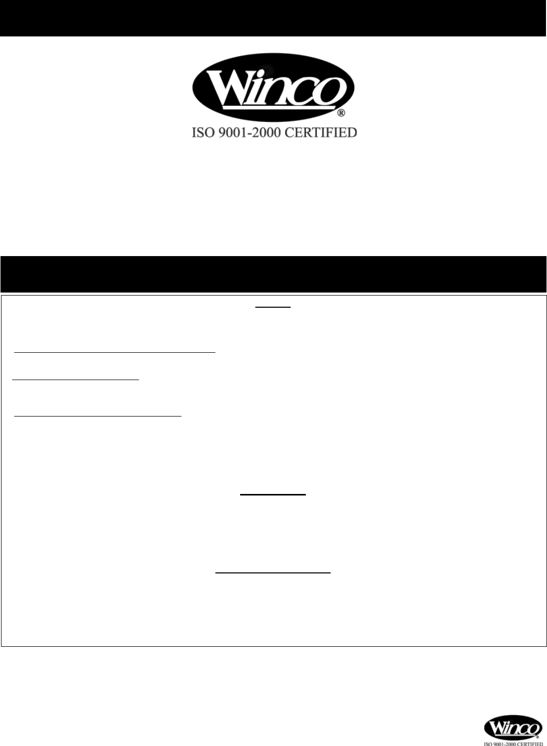 Winco, Inc. warrants this product to be free of manufacturer’s defects in material and workmanship, provided that the product is used according to normal