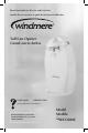 Utilisation Entretien et nettoyage Cet appareil est conçu pour un usage domestique seulement. Note : Voir ENTRETIEN ET NETTOYAGE pour les instructions de montage. 1. Retirer tout l’emballage de l’appareil avant de l’utiliser. 2. Placez l’ouvre-boîtes sur une surface plane et branchez-le dans une prise de courant 120 V~ 60 Hz. 3. Placez l’ouvre-boîtes à peu près de niveau. 4. Tout en levant le levier, placez la boîte sous la barre guide, contre la roue dentée. 5.
