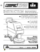 3. Keep the battery electrolyte at th$ correct level - approximately 114 below bottom of filler tube of each cell. Distilled water should be added, as needed, AFTER charging cycle. 4. Check motor brushes. When worn to 318” replace both brushes. WARNING: Do not allow electrolyte level to drop below the tops of the plates. SERVICING THE COMPACT SCRUBBER ’ CAUTION: 3. Connect the “DC” charger plug to the connector on the machine.