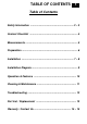 TABLE OF CONTENTS 1 Table of Contents Safety Information .............................................................. 2 – 3 Content Checklist ..................................................................... 4 Measurements ........................................................................... 5 Preparation ................................................................................ 6 Installation ...........................................................................