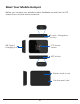 Set Up Your Mobile Hotspot 1. Remove back cover, and take the battery out. 2. Remove the SIM card from the outer card. 3. Locate the SIM card slot. Hold SIM so that the cut corner is at the top and gold contacts are facing downward. Insert SIM by pressing down on the clip and sliding into the SIM slot. 4. Insert the battery. Install the back cover, the arrow on the back cover points downward. 5. Charge mobile hotspot fully.