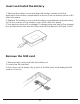 Insert and Install the Battery 1. Remove the battery cover and align the battery contacts with the terminals in the battery compartment as shown.Push the battery down until it clicks into place. 2. Replace the battery cover over the battery compartment and press down on the four corners of the battery cover until it clicks into place. 3.Your device comes with a charger. To charge, plug one end of the charger into an electrical outlet and the other end into the device’s USB Type-C port.