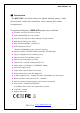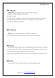 WSP-i450 Rev. 6.2 3.2. Bluetooth Category Specification Bluetooth Spec. Bluetooth Ver3.0 / Class2 (10m) Frequency band 2402~2480㎒ Protocol L2CAP, RFCOMM, SDP Profile GAP, SDAP, SPP 3.3. Wireless L AN Category Specification Function Radio frequency transfer Module (IEEE802.11b/g/n standard conformity) Frequency band 2.4GHz Channel 1 to 13 channel Security WEP(64/128), WPA(TKIP), WPA2(AES) 3.4.