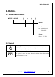 WSP-i450 Rev. 6.2 1.3 Product Par t Number System Model name / Interface Spec. Wired S40 SC30 W25 . . . Example) 1. Porti-S40 Wireless A RS-232C 1 Bluetooth B TTL 2 IrDA C USB 3 Wireless LAN D RS-485 0 None E Parallel Z None Serial/Bluetooth Part No. ⇒ S40/A1 2. Porti-SC30 Bluetooth Only Part No. ⇒ SC30/Z1 Note) The above table is the interface format which is supported.