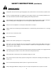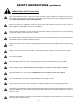 SAFETY INSTRUCTIONS (continued) OPERATIONAL SAFETY (continued) Do not allow children or others to ride on the power unit with an operator. Riders are subject to injury such as being struck by foreign objects or being thrown off. Riders obstruct the operator’s view resulting in unsafe operation. Never allow anyone to ride on the implement! Before you operate any equipment, check over all pins, bolts and connections to be sure all are securely in place. Replace any damaged or worn parts immediately.