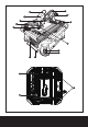 1. ON SWITCH 2. OFF SWITCH 3. STABILIZER BRACKET 4. BLADE STORAGE 5. MITER GAUGE 6. TABLE INSERT 7. GUARD KNOB 8. GUARD 9. VACUUM PORT 10. GUARD ARM 11. GUARD ARM CLAMP KNOB 12. RIP FENCE 13. FENCE SLOT 14. MITER SLOT 15. BLADE RELEASE 16. VACUUM ADAPTER (See Fig. K ) 17. BOLT (See Fig. A1) 8 18. GUARD ARM ASSEMBLY KNOB (See Fig. A1) 19. BLADE (See Fig. B2) 20.