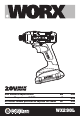 boca. Si se tragan, contacte a su médico o al centro de control de envenenamiento local. 5) PRECAUCIÓN – La batería usada en este dispositivo puede presentar riesgo de incendio o quemadura química si se manipula en forma incorrecta. Reemplace la batería con (WORX WA3520) solamente. El uso de otra batería puede presentar riesgo de incendio o explosión. 6) ADVERTENCIA: No use un paquete de batería o dispositivo visiblemente dañado según corresponda.