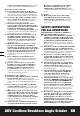 CONSIGNES DE SÉCURITÉ SUPPLÉMENTAIRES SPÉCIFIQUES AUX OPÉRATIONS DE TRONÇONNAGE 18 Consignes de sécurité supplémentaires spécifiques aux opérations de tronçonnage abrasives: a) Ne coincez pas la meule ou n’appliquez pas de pression excessive. Ne tentez pas d’effectuer une découpe d’une profondeur excessive. Une surcharge de la meule augmente la charge et la susceptibilité aux torsions ou coincements de la meule lors de la découpe et la possibilité d’un rebond ou que la meule se casse.