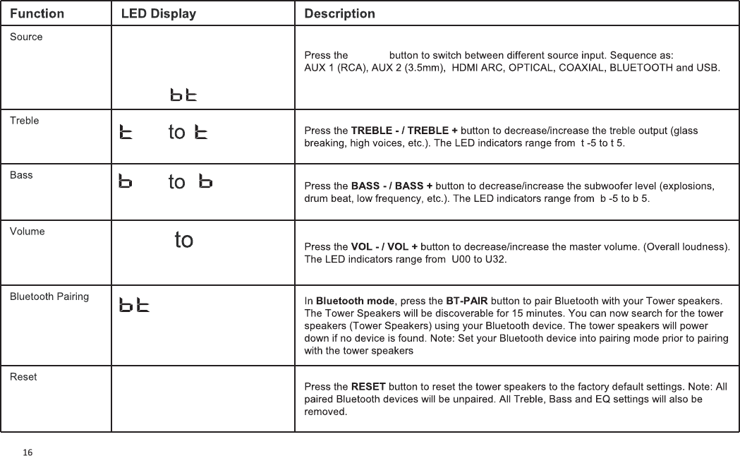 Press the buttons on the remoteto access the different functions and acoustic settings of the Tower Speakers.